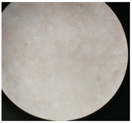 The visual chaining in the samples shown in Figure 3 indicates that the material under the influence of storage in water is hydrolyzed, which can be observed as a change in color and lack of transparency. In Figure 4, the material sample containing Biomin F glass, surface changes are visible at magnification. The roughness of the sample surface increased.