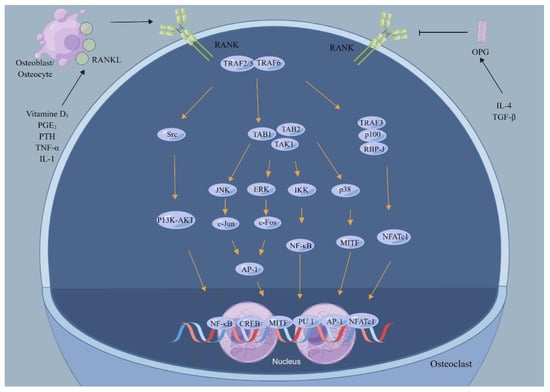 - Lee, K.; Seo, I.; Choi, M.H.; Jeong, D. Roles of Mitogen-Activated Protein Kinases in Osteoclast Biology. Int. J. Mol. Sci. 2018, 19, 3004. [Google Scholar] [CrossRef] [PubMed]