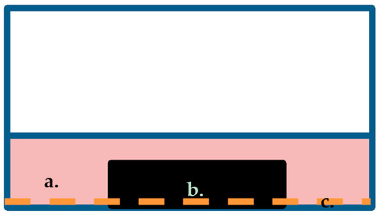 Method of co-culturing of test material with cells: (a) culture medium, (b) test material, (c) cell monolayer.