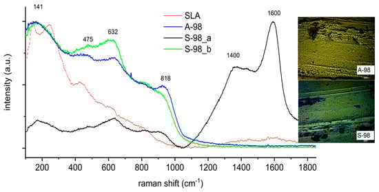 Raman spectra of the A-98 and S-98 samples.