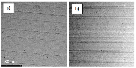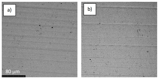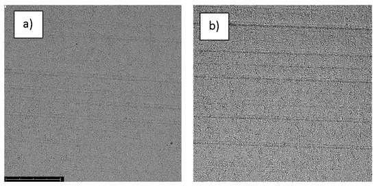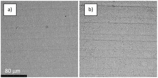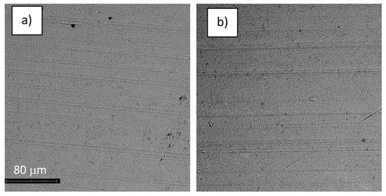 The structure of the surface of sample S-67: (a) before the corrosion test; (b) after the corrosion test; magnification: ×1000.
