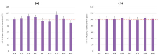 All biological tests were performed in five independent replicates. Due to the normal distribution and equal variance of the results obtained, statistical calculations were performed with parametric tests. Using Statistica v.13 software, the statistical significance was calculated using Tukey’s post hoc test using Statistica v.13 software. The significance point was established at * p < 0.05.