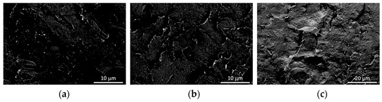 SEM micrographs (CBS detector) of PLA/PBSA/LDH-FA_4 (a), PLA/PBSA/LDH-RA_4 (b), and PLA/PBSA/LDH-GA_4 (c).