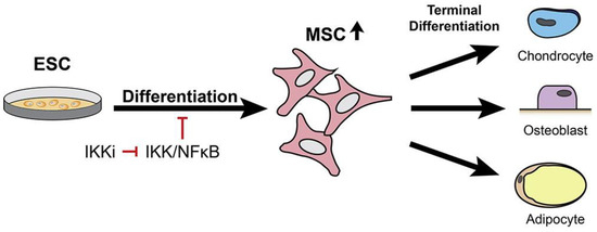 Inhibition of IKK/NF-κB signaling enhances differentiation of mesenchymal stromal cells from human embryonic stem cells [40]. Copyright 2016, Elsevier.