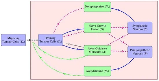 - Lolas, G.; Bianchi, A.; Syrigos, K.N. Tumour-induced neoneurogenesis and perineural tumour growth: A mathematical approach. Sci. Rep. 2016, 6, 20684. [Google Scholar] [CrossRef]