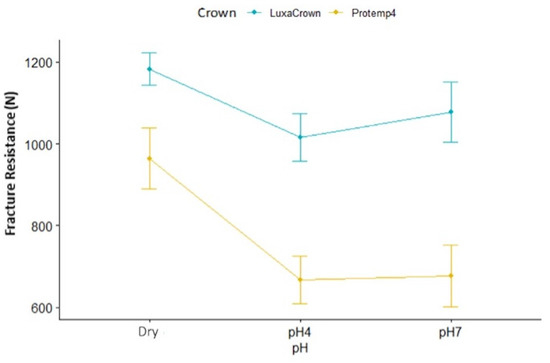 The Influence of Saliva pH on the Fracture Resistance of Two Types of Implant-Supported Bis-Acrylic Resin Provisional Crowns—An In Vitro Study