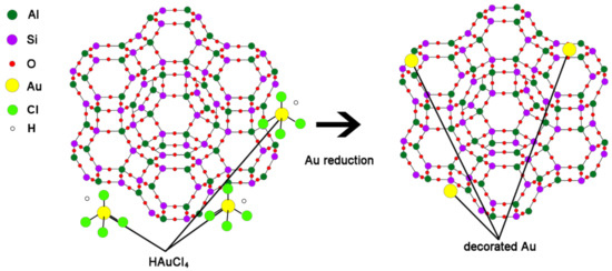 Synthesis of Au-decorated zeolite and its structure via reduction of Au.