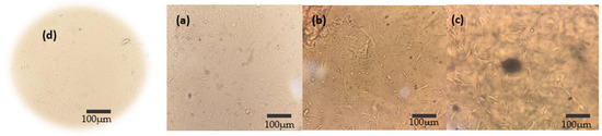 Images of cell viability tests by MTT: (a) GelMA 24 h, (b) Lap 24 h, (c) Lap/GelMA 24 h; (d) Control.
