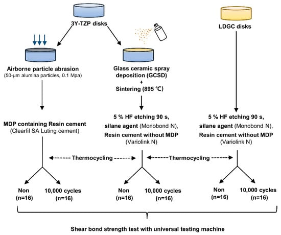 - Kang, C.; Lin, D.; Feng, S.; Hung, C.; Iwaguro, S.; Peng, T. Innovation glass-ceramic spray deposition technology improving the adhesive performance for zirconium-based dental restorations. Int. J. Mol. Sci. 2022, 23, 12783. [Google Scholar] [CrossRef] [PubMed]
