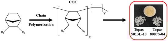 - Shin, J.Y.; Park, J.Y.; Liu, C.; He, J.; Kim, S.C. Chemical Structure and Physical Properties of Cyclic Olefin Copolymers (IUPAC Technical Report). Pure Appl. Chem. 2005, 77, 801–814. [Google Scholar] [CrossRef]