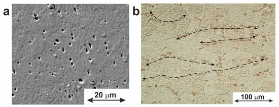 Importantly, the grain boundaries are assigned to two different types, general and special types. Changes in the properties of the boundaries during heating can lead to changes in the strength and plasticity of materials and affect the course of recrystallization processes [74,75]. Visual identification of special boundaries in the structure of polycrystals is based on their special features, for instance, low etchability [75,76,77,78]. The boundaries of the general type have higher energy than the former type since they are more strongly etched in most electrolytes [75,76,77,78]. Thus, in the present study, the type of boundaries was determined by assessing the degree of etching. The fraction of special-type boundaries detected in the studied material was 52.6%.