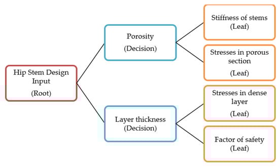 Conventional hip stems are made of dense metals such as cobalt-chromium, stainless steel, and titanium. The stiffness of these dense stems is 5–15 fold higher than that of the cortical bone and 50–100 fold higher than that of the cancellous bone [,]. This high mismatch of stiffness causes several complications such as stress shielding, aseptic loosening, corrosion, and implant failure [,]. Thus, revision of surgeries is required to fix the failed stems, which is a costly and painful process. To overcome the aforementioned complications, researchers have developed fascinating materials and designs using the additive manufacturing technique to reduce the stiffness of stems that can last longer with excellent functionality [,]. The choices of materials are limited due to biocompatibility; however, the implant designs have been extensively studied in recent decades. Several studies have shown excellent biocompatibility of titanium alloys when tested in vivo. Titanium alloys are inert and showed excellent bone ingrowth into the porous surfaces [,,]. Moreover, advanced manufacturing techniques such as additive-manufactured implants also showed excellent biocompatibility; however, the development of new materials and designs of medical devices does not contain biocompatibility testing until the prototype stage is reached []. Recently, different stem designs were based on the additive manufacturing concept that provides wide freedom to alter the design [,,]. Porous stems with various architectures are manufactured with additive manufacturing to reduce the stiffness of the stems. These porous cellular architectures include circular, cubic, body-centered cubic, diamond, and gyroid shapes []. Moreover, the porosity of these cells can be easily controlled within stems. These porous structures are usually filled inside the stem with an outer dense layer; thus, these design parameters generate a lot of design alternatives that are costly and time-consuming, using experiments. Therefore, computer models [,] are attracting the attention of researchers to reduce the cost, time, and uncertainty in experimental work. Alkhatib et al. [] investigated the biomechanical performance of hip stems under various physiological conditions such as walking and stair climbing, and found that hip stems showed more stresses in the climbing activity as compared with the walking activity. Moreover, porous hip stems alleviated stress shielding in surrounding bone as compared with dense stems under different activities. However, these simulations are also costly, as they require the running of hundreds of simulations for these design parameters. Thus, researchers have recently given more attention to incorporating machine learning (ML) techniques in the medical field, which are capable of predicting the results [,,].