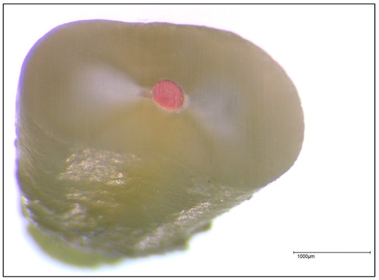 The same roots were used in the same sequence in each group. Any filling material present was completely removed from the root canal at the beginning of the experimental procedure, and the canal system was checked again for patency in each case. A representative image of a root specimen is shown in Figure 2.