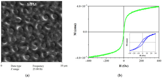 The magnetic properties of MNDs were measured with the vibrating sample magnetometer (VSM 8600) Lakeshore (Lake Shore Cryotronics, Westerville, OH, USA). The magnetic structure of MNDs was observed using a scanning magnetic probe force microscope by Veeco MultiMode Nano Scope IIIa SPM System (San Jose, CA, USA) in the mode of formation of magnetic power moment images by the two-pass procedure.
