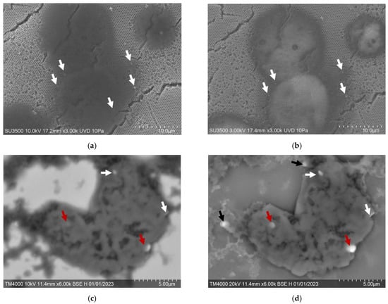 SEM analysis of cells after MMM showed that one to five MNDs could attach to one cell destructed by AMF. The high voltages of the electron beam (20 kV) made it possible to scan cells in depth. The 10 kV voltage electron beam visualized MNDs attached to the cell’s upper surface. Experiments showed that the MNDs could be located outside the cell membrane (Figure 5c, black arrow) and partially penetrate the cell due to membrane rupture (Figure 5d, red arrow).