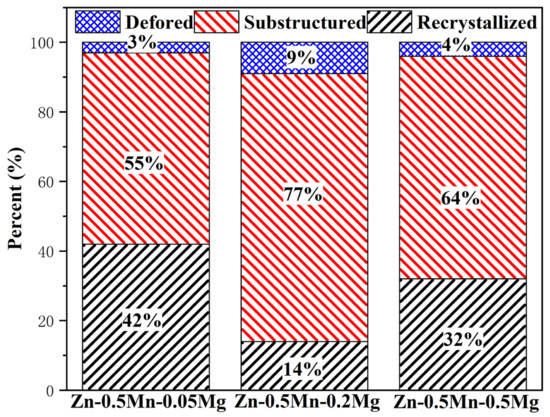 The percent of recrystallized Zn-Mn-Mg alloys.