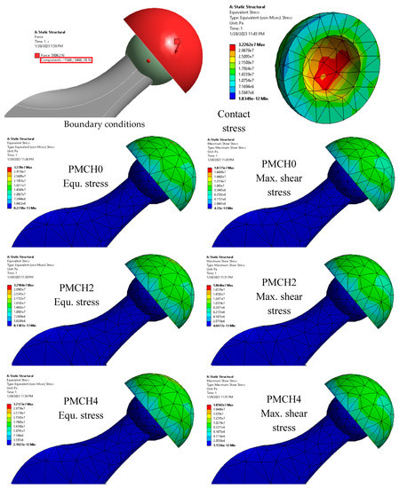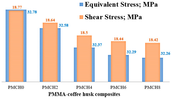 Finite element model with boundary conditions and contact stresses for different PMMA–coffee husk composites. Adapted from [18].