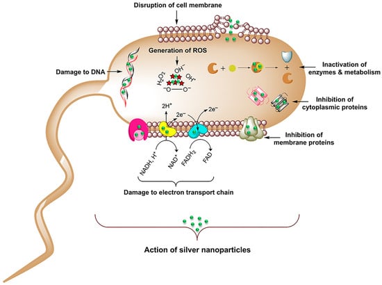 - Dakal, T.C.; Kumar, A.; Majumdar, R.S.; Yadav, V. Mechanistic Basis of Antimicrobial Actions of Silver Nanoparticles. Front. Microbiol. 2016, 7, 1831. [Google Scholar] [CrossRef] [PubMed]
