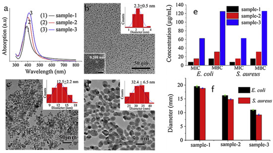 - Wu, Y.P.; Yang, Y.; Zhang, Z.J.; Wang, Z.H.; Zhao, Y.B.; Sun, L. A facile method to prepare size-tunable silver nanoparticles and its antibacterial mechanism. Adv. Powder Technol. 2018, 29, 407–415. [Google Scholar] [CrossRef]