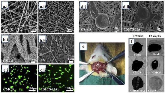 - Liu, H.; Peng, H.; Wu, Y.; Zhang, C.; Cai, Y.; Xu, G.; Li, Q.; Chen, X.; Ji, J.; Zhang, Y.; et al. The promotion of bone regeneration by nanofibrous hydroxyapatite/chitosan scaffolds by effects on integrin-BMP/Smad signaling pathway in BMSCs. Biomaterials 2013, 34, 4404–4417. [Google Scholar] [CrossRef]