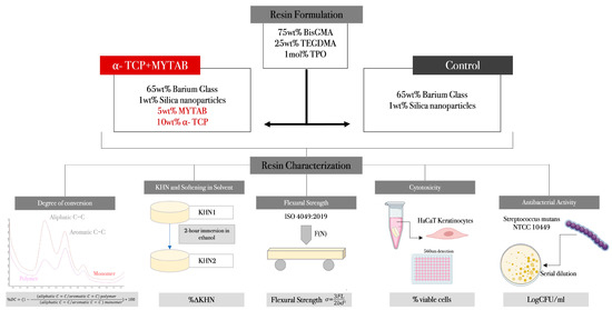 Pontons-Melo, J.C.; Balbinot, G.d.S.; Sauro, S.; Collares, F.M. Experimental Composite Resin with Myristyltrimethylammonium Bromide (MYTAB) and Alpha-Tricalcium Phosphate (α-TCP): Antibacterial and Remineralizing Effect. J. Funct. Biomater. 2023, 14, 303. https://doi.org/10.3390/jfb14060303