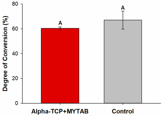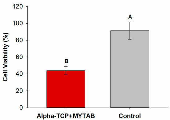 | α-TCP/MYTAB | 80.49 (±7.11) Aa | 59.92 (±5.10) b | 25.49 (±2.14) B |