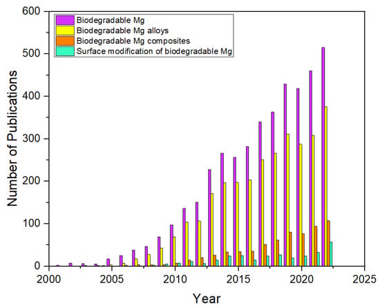 Publication history on biodegradable implants focused on Mg-based implants and coatings. (Source Data from Scopus Search).