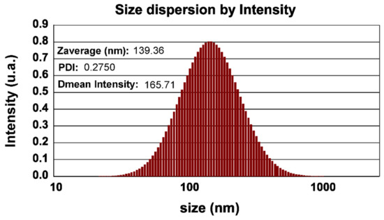 The DLS analysis demonstrated a Z average of 139.36 nm with an acceptable polydispersity index (PI = 0.27, Figure 5). The PI showed an acceptable range of hydrodynamic sizes of the particles. A higher Z average compared to the solid phase and crystallite sizes indicated that particles tended to agglomerate in water. The agglomeration was relatively high, and the particle diameter was more than four-times greater than the sizes obtained from the FESEM. It is worth noting that DLS is less sensitive to smaller particles, and the presence of larger particles may have interfered with the results. The zeta potential also displayed a negative surface charge of the Au/nanoceria (−18.1 mV), which may be the logical reason for NP stability in the aqueous solution, along with the particle sizes. It appears that the biosynthesis method at room temperature could influence the particle sizes of the nanoceria.