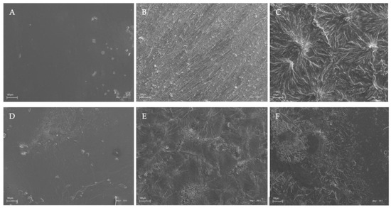 SEM images of the chitosan-based films. Symbols of chitosan-based films (A–F) according to Table 1.