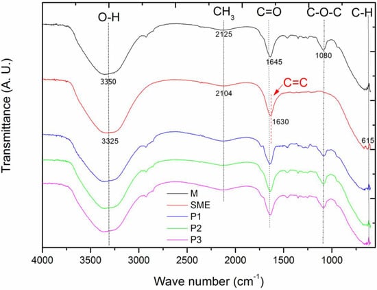 | Samples | Main Groups Functional | Wave Number (cm−1) |