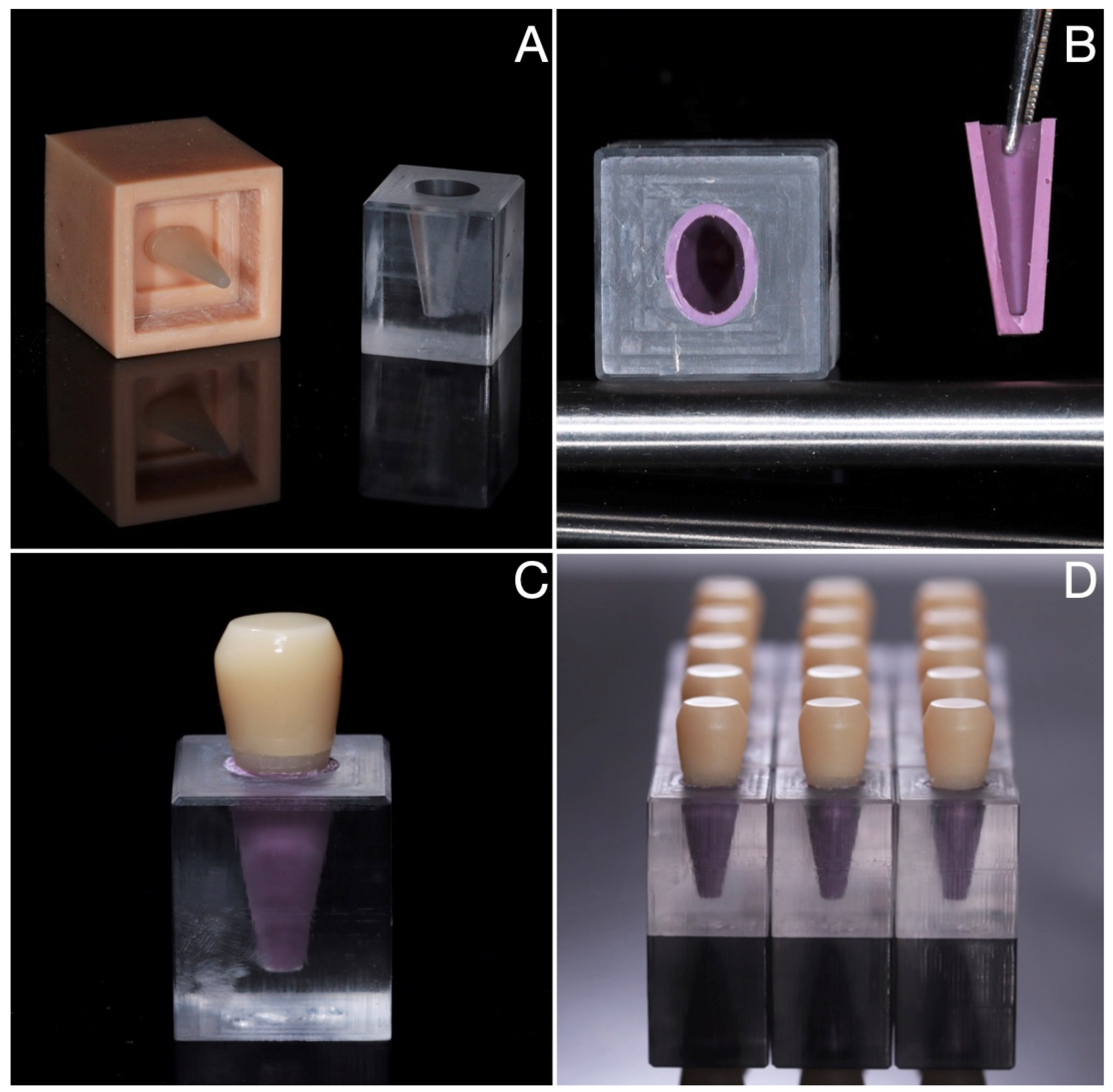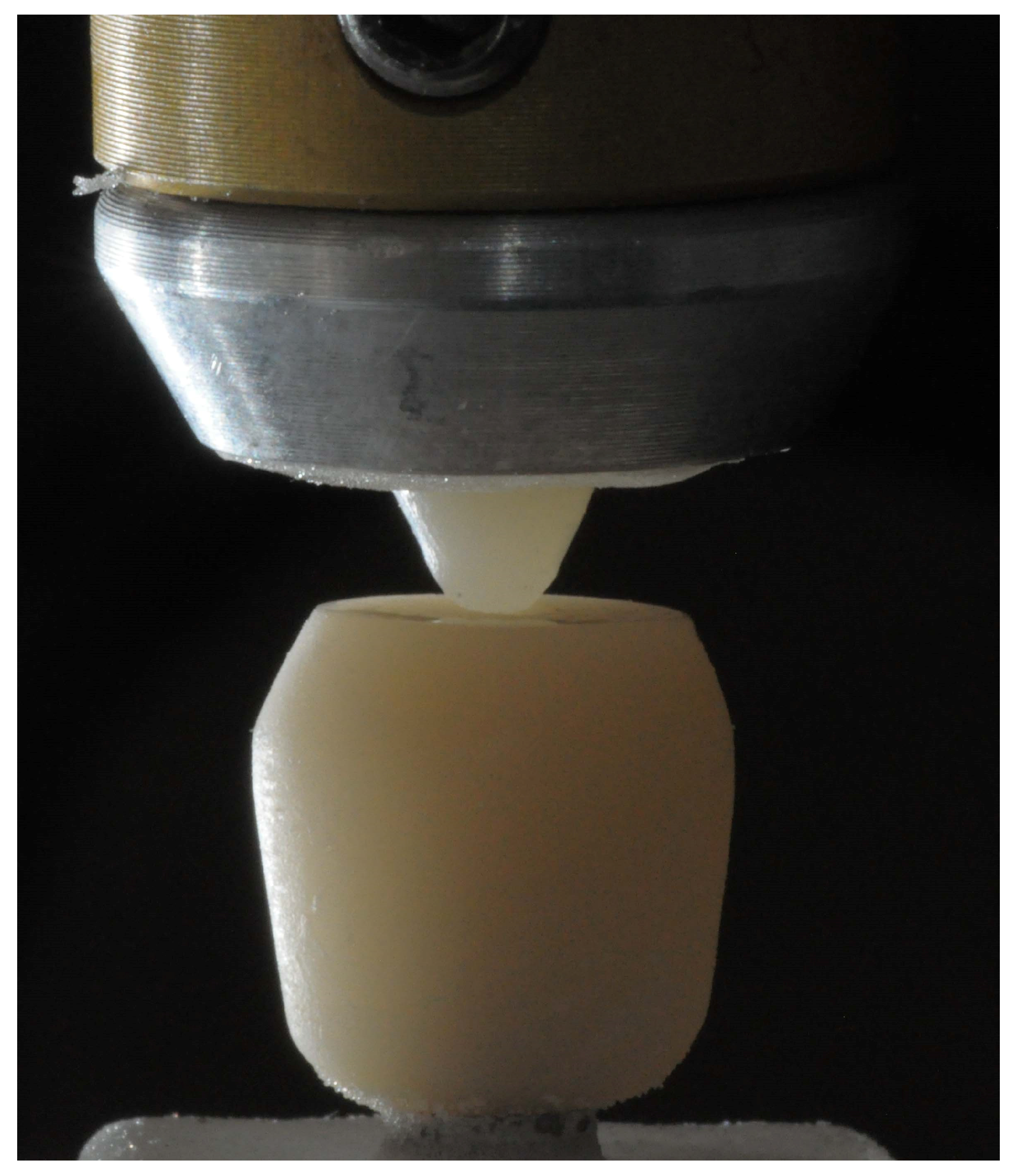 - Rosentritt, M.; Schneider-Feyrer, S.; Behr, M.; Preis, V. In Vitro Shock Absorption Tests on Implant-Supported Crowns: Influence of Crown Materials and Luting Agents. Int. J. Oral. Maxillofac. Implant. 2018, 33, 116–122. [Google Scholar] [CrossRef]