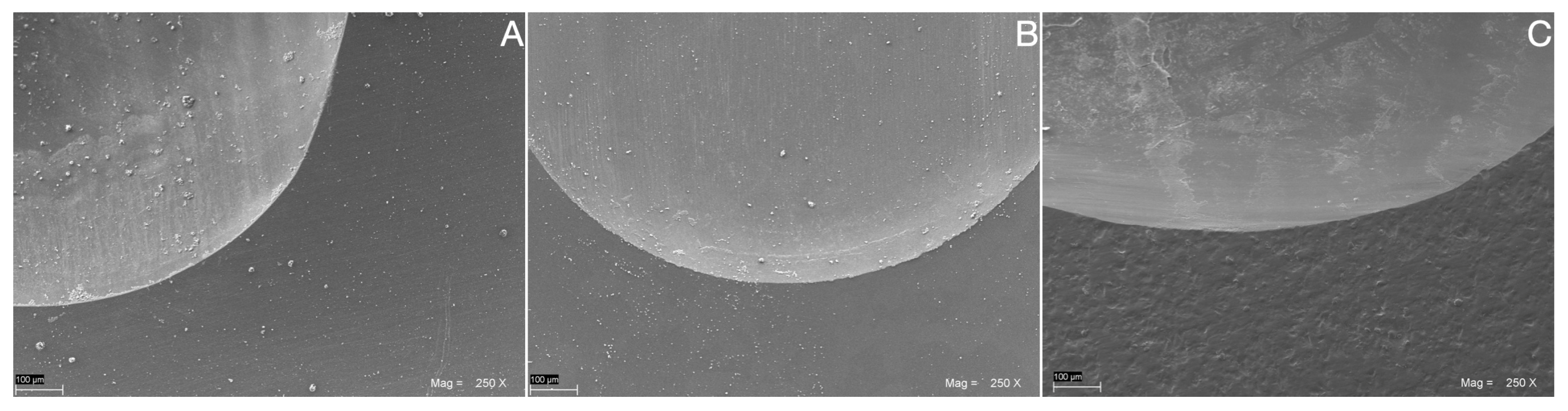 - Preis, V.; Behr, M.; Handel, G.; Schneider-Feyrer, S.; Hahnel, S.; Rosentritt, M. Wear performance of dental ceramics after grinding and polishing treatments. J. Mech. Behav. Biomed. Mater. 2012, 10, 13–22. [Google Scholar] [CrossRef]
