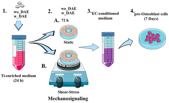 - Pinto, T.S.; Martins, B.R.; Ferreira, M.R.; Bezerra, F.; Zambuzzi, W.F. Nanohydroxyapatite-Blasted Bioactive Surface Drives Shear-Stressed Endothelial Cell Growth and Angiogenesis. BioMed Res. Int. 2022, 2022, 1433221. [Google Scholar] [CrossRef]
