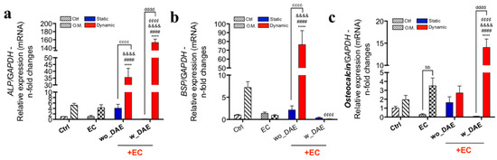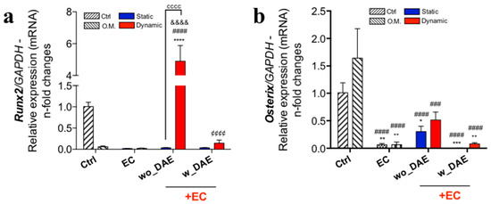 3.2. In Conjunction, Angiocrine Soluble Factors and Titanium Promote Osteogenic Gene Markers’ Requirements