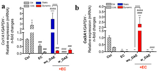 3.3. Mechanotransduction-Related Endothelial Cell Signaling Drives Angiocrine Molecules Requiring Col3A1 and the Profile of ECM Remodeling in Differentiating Osteoblasts