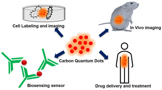 Figure 5 depicts the application of NCDs in DDS. Iqra et al. developed an NCD-capped AgO/ZnO nanocomposite using banana juice as source for NCDs and the AgO/ZnO NPs were synthesized from