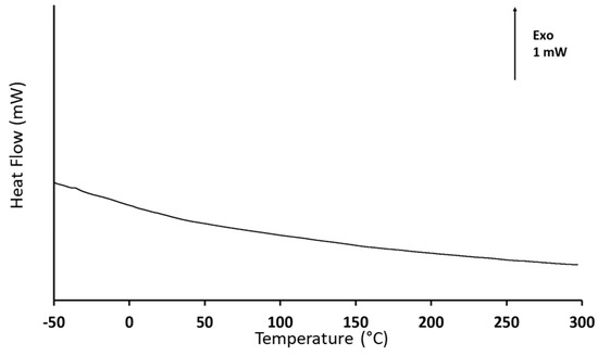 The DSC results, shown in Figure 4, lead to similar interrogations. According to the heat flow variations with temperature, there is no evidence of any transition in the temperature range covered by the analysis. The events of interest for this analysis are the PEI glass transition and its onset of decomposition. Typically, the glass transition of PEI is expected to be around −25 °C [72], while the thermal decomposition has been reported to start at about 250 °C [73]. However, the obtained DSC response is identical to the signal obtained when performing the baseline step during the calibration procedure. This observation is consistent with the results reported by Feng et al. [74] for a plasma-sprayed Ti-6Al-4V/HAp composite. In this study, no calorimetric event was recorded before 700 °C, that is, before the phase transformation of HAp. The absence of any characteristic thermal event is also consistent with TGA results. Thus, it is reasonable to assume that there is no residual PEI on the sol–gel dip coated support, due to the annealing procedure. Nevertheless, it is worth reminding that the quantity of PEI mixed with HAp is very small, as its role lies essentially in facilitating the adhesion of HAp on the support. Thus, the detection of residual traces can be particularly challenging and possibly beyond the resolution limits of both thermal analysis apparatuses.