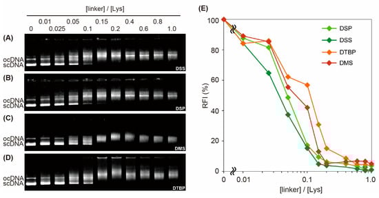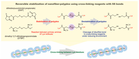 34]. The cross-linking reagents DSS, DSP, DMS and DTBP were added to the nanofiber-polyplex solutions at varying [linker]/[Lys] ratios, in which the