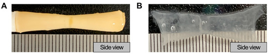 Vessel-like structure in printed stenotic models. (A) Image before separation with PVA rod. (B) Image after separation with PVA rod.