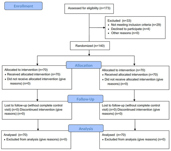 - Schulz, K.F.; Altman, D.G.; Moher, D.; CONSORT Group. CONSORT 2010 Statement: Updated guidelines for reporting parallel group randomized trials. Trials 2010, 11. [Google Scholar] [CrossRef]