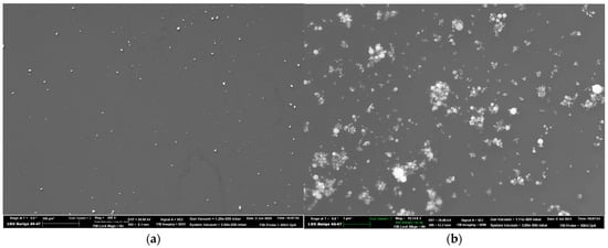 For scanning electron microscopy (SEM) studies, the particles were deposited on a clean polished silicon substrate. Precipitation of the prepared solution was carried out using a microdoser. The drying process (evaporation) was conducted in an oven within a fume cupboard.Precipitation of particles from the initial suspension onto a silicon substrate: The initial suspension was precipitated using a disposable syringe. The drying process (evaporation) was conducted on a slab within a fume cupboard. The studies were conducted primarily along the periphery of the precipitated drop.
