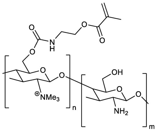 Chemical structure of Tm-Cs-MOI, a quaternized chitosan derivative with polymerizable acrylic function.