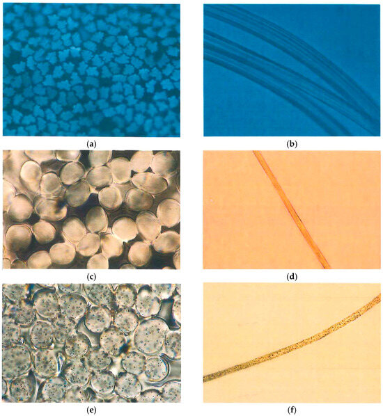 The microscopic views of regenerated cellulose fibers and some common synthetic fibers are presented in Figure 1. More microscopic views of different fibers may be found in [24].