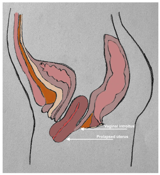 Schematic diagram demonstrating pelvic organ prolapse.