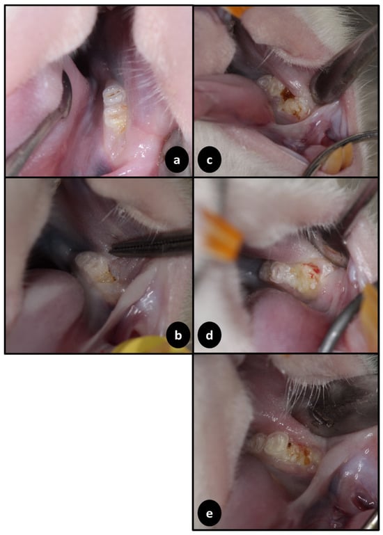 Furthermore, periodontitis is a factor that leads to the induction of osteonecrosis []. After 3 weeks of applying ZOL medication, the rats were positioned on an operating table, where the cotton ligatures were removed, and syndesmotomy of the tissues adjacent to the tooth were performed, followed by the dislocation and extraction of the lower left first molars using dental surgical materials adapted to animals.
