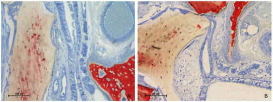 Two sections, approximately 100–150 µm thick, were produced using precision cutting and grinding equipment (Exakt, Apparatebau, Norderstedt, Germany) and then further reduced to a thickness of 60–80 µm. The histological sections were stained using either Toluidine Blue or a combination of Stevenel’s Blue and Alizarin Red.