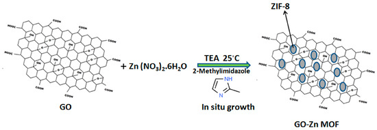 2.1.3. Preparation of Zinc—MOF/GO (ZIF-8 @ GO) Composites