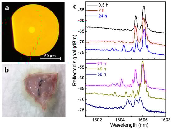 - Podrazký, O.; Peterka, P.; Kašík, I.; Vytykáčová, S.; Proboštová, J.; Mrázek, J.; Kuneš, M.; Závalová, V.; Radochová, V.; Lyutakov, O.; et al. In vivo testing of a bioresorbable phosphate-based optical fiber. J. Biophotonics 2019, 12, e201800397. [Google Scholar] [CrossRef] [PubMed]