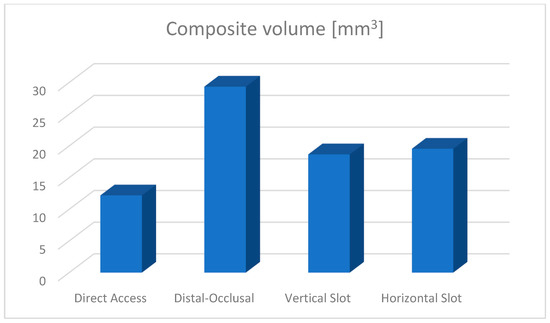 In the last decades, due to increasing aesthetic demands from patients, important improvements have been made to composite resins, allowing them to be used also in the restoration of posterior teeth [1]. Composite resins are the direct restorative materials of choice for dentists, with good success rates and long-term clinical performance [2]. Annual failure rates vary from 1% to 5% for anterior teeth and 1% to 3% for posterior teeth, respectively [3]. While, in the past, the use of an amalgam required the creation of retentive cavities, its replacement with composite resins has allowed a more conservative approach [4]. Nowadays, it is suggested that cavity design is dictated solely by the extension of the caries process, thanks to the strong adhesive bond between the composite and the remaining hard tissues. This consideration is in accordance with biological principles, but also those of a mechanical nature [5]. Therefore, in cases of the existence of carious processes on the proximal faces of the posterior teeth, in addition to the classic cavities, cassette (in the case of direct access) and compound occlusal–proximal (in the case of indirect access), new forms of preparation have emerged: tunnel cavity, vertical slot and horizontal slot [6,7].