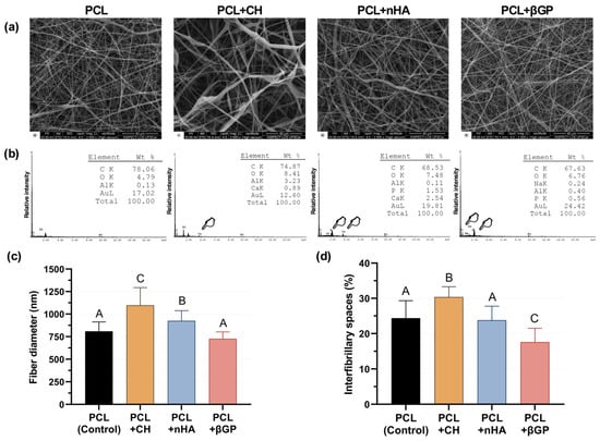 Anselmi, C.; Mendes Soares, I.P.; Mota, R.L.M.; Leite, M.L.; Ribeiro, R.A.d.O.; Fernandes, L.d.O.; Bottino, M.C.; de Souza Costa, C.A.; Hebling, J. Functionalization of PCL-Based Fiber Scaffolds with Different Sources of Calcium and Phosphate and Odontogenic Potential on Human Dental Pulp Cells. J. Funct. Biomater. 2024, 15, 97. https://doi.org/10.3390/jfb15040097